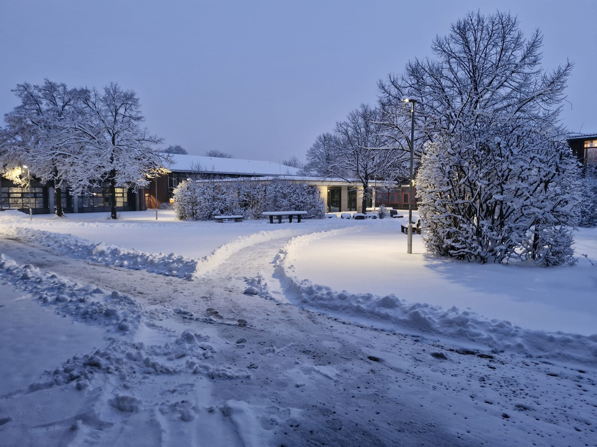 Wir möchten uns ganz herzlich bei unserem Team bedanken, das dafür gesorgt hat, dass die wichtigsten Gehwege und Zugangsbereiche des Schulzentrums rund um die Mittelschule bereits weit vor dem Eintreffen der Schülerinnen und Schüler sowie des Kollegiums geräumt und gestreut waren. Doch damit nicht genug: Den gesamten Vormittag über wurde mit großem Fleiß darauf geachtet, dass die Wege schneefrei bleiben und die Sicherheit auf dem Schulgelände gewährleistet ist.